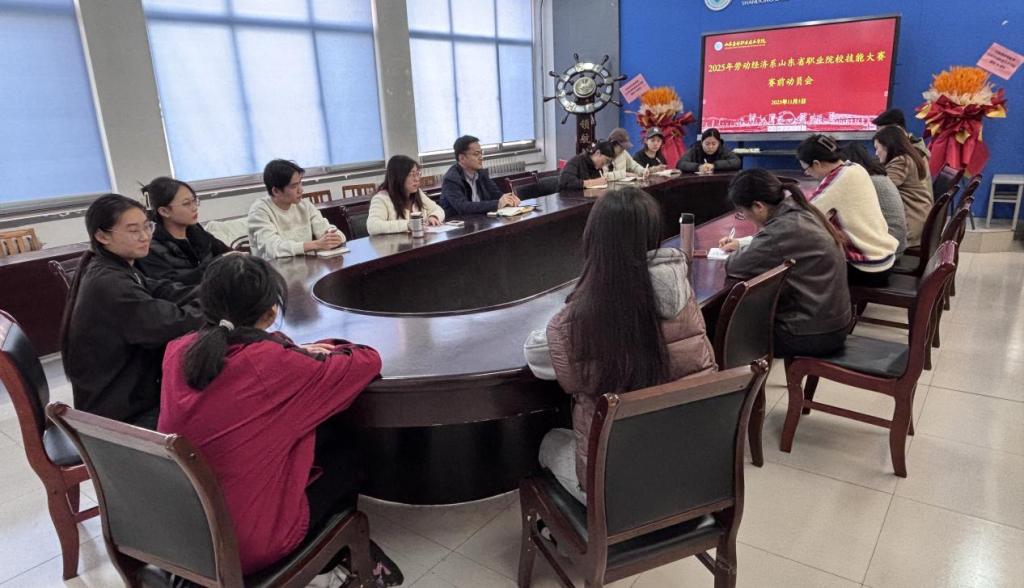 11月5日,劳动经济系组织召开2025年山东省职业院校技能大赛赛前动员会,系主任张峰、副主任郑雯、大赛指导教师及全体参赛学生参加会议。会议由副主任郑雯主持,本次动员会旨在凝聚备赛力量、明确冲刺方向,为即将到来的省级赛事注入强劲动能。