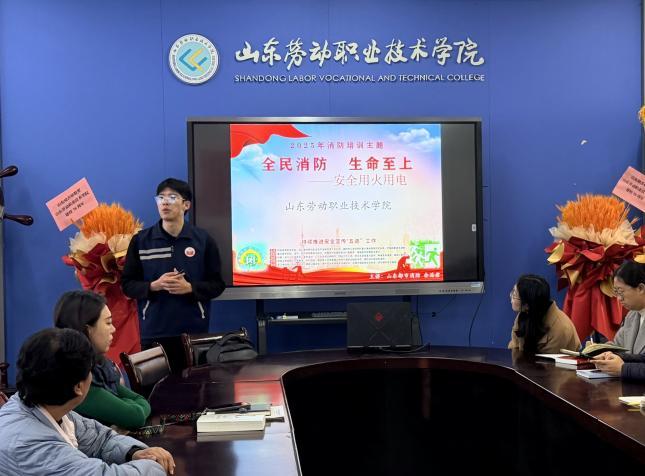 为进一步强化师生消防安全意识,提升突发火灾事故的应急处置和自救互救能力,切实筑牢校园安全屏障,11月13日下午,山东都市消防中心培训部主任余浩君应邀到学院劳动经济系开展消防安全知识技能培训。系党总支书记林蓉、副书记朱箐竹、代理副主任郑雯、全体教师和学生代表参加。