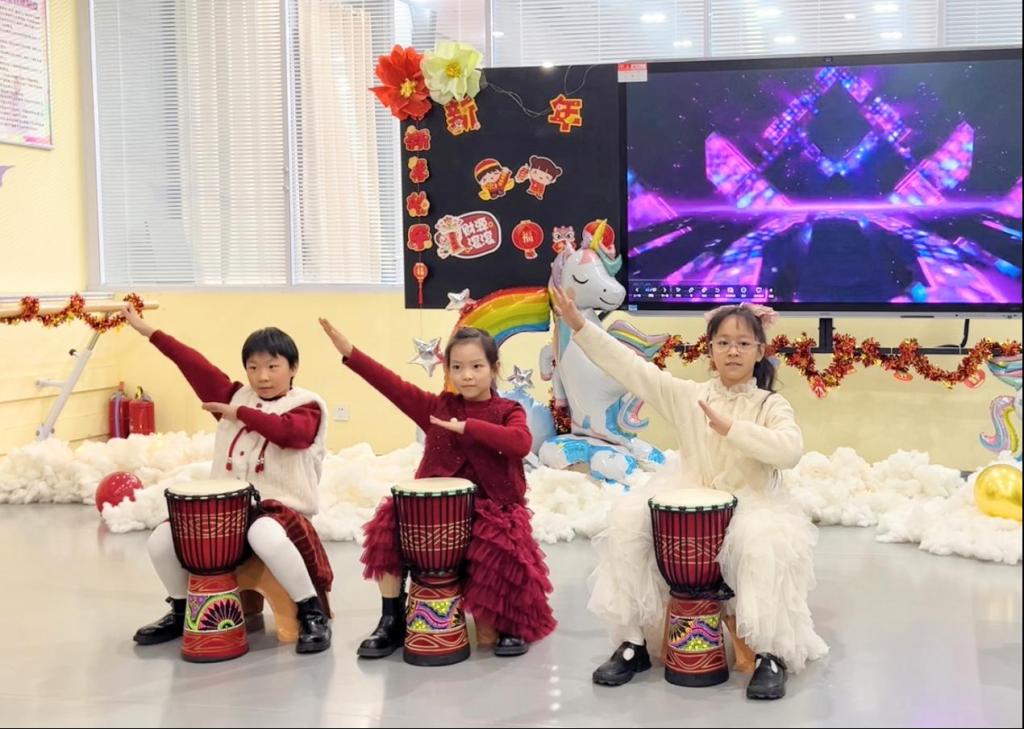 音乐会上,小朋友们以饱满的热情和精湛的技艺,为观众带来了钢琴、手风琴、舞蹈及非洲鼓等表演。钢琴曲目从经典童谣《小星星》《玛丽有只小羊羔》到充满童趣的《小英雄大肚腩》《洋娃娃和小熊跳舞》,再到传统与现代交融的《茉莉花》《东方红》《上春山》,旋律跨越时空,展现了孩子们对音乐的深刻理解与创造力。手风琴表演同样精彩纷呈,从悠扬的《蝴蝶》到欢快的《春天到》,再到经典红歌《闪闪的红星》,每一首曲目都凝聚着孩子们的努力与热爱。