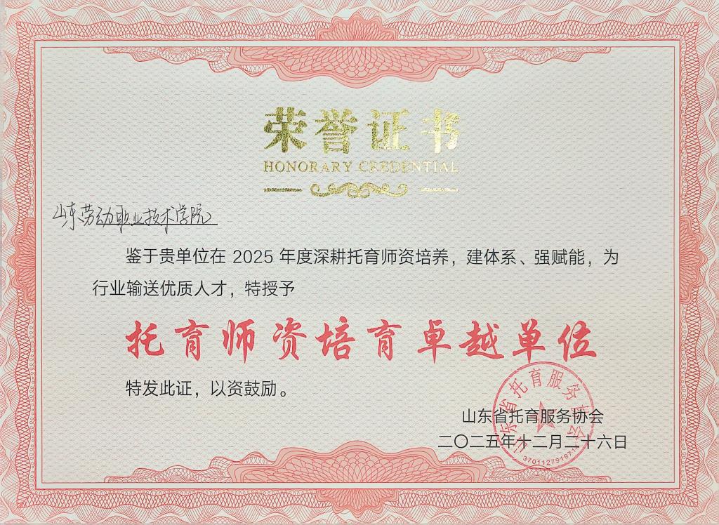近年来,山东劳动职业技术学院积极响应国家关于发展普惠托育服务体系的政策号召,依托婴幼儿托育服务与管理专业,深化“岗课赛证”融通育人模式,构建“医—养—教”一体化课程体系,与多家优质托育机构建立深度合作关系,为区域托育事业发展输送了大批高素质技术技能人才。此次获奖,既是对我院托育师资培养工作的高度认可,也进一步彰显了学院在推动山东省托育服务专业化、标准化、高质量发展中的重要作用。