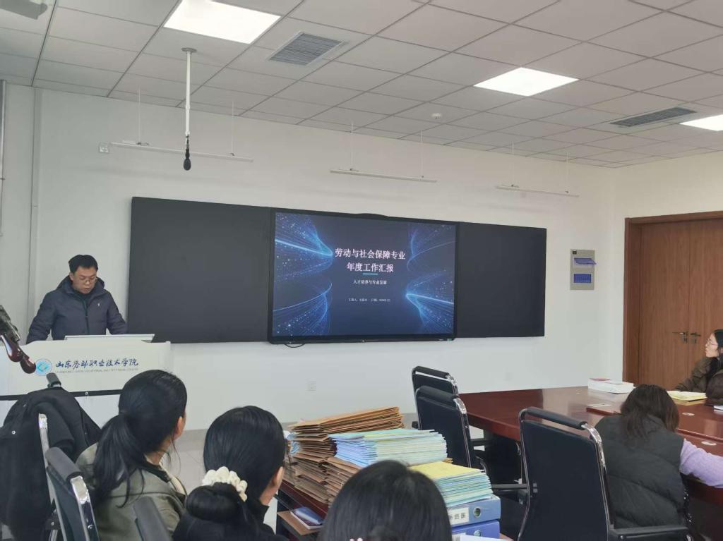 为深入贯彻落实学院关于推进教学内涵建设的部署要求,系统总结专业建设成果,明晰发展方向,持续提升人才培养质量,2026年1月22日下午,劳动经济系成功举办专业负责人“说专业”活动。学院教务处赵烽处长、汪娟海老师出席指导,劳动经济系主任张峰及全体教师参加活动。人力资源管理、劳动与社会保障、职业指导与服务、婴幼儿托育服务与管理、大数据与会计、金融服务与管理等6个专业的负责人依次作专题汇报。