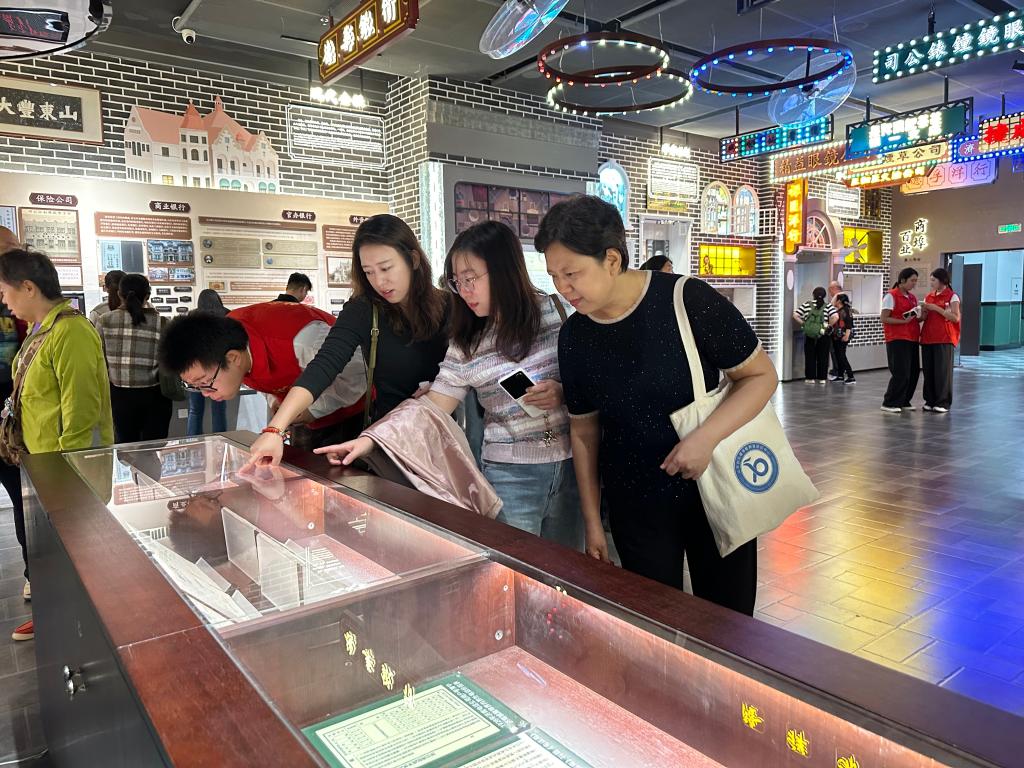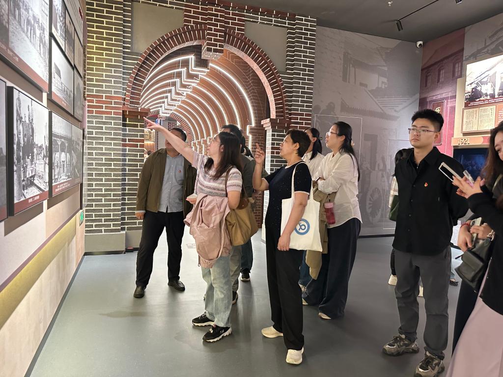 在讲解员的引导下,师生代表围绕“自开商埠”“新城崛起”“商埠百业”“商埠生活”“新生力量”“振兴开放”六大展区展开细致参观。展区内,泛黄的老济南街景照片、标注商号信息的民国纸钞、按历史原貌复原的“瑞蚨祥”绸缎庄、“宏济堂”药店等场景,与动态投影、互动查询屏等现代化展项相互补充。从开埠初期的商业政策,到老字号商铺的经营理念,再到现代济南的文化传承,大家在交流与思考中,全面梳理济南开埠以来的发展脉络,深刻体会地方历史文化的厚重底蕴与时代价值。