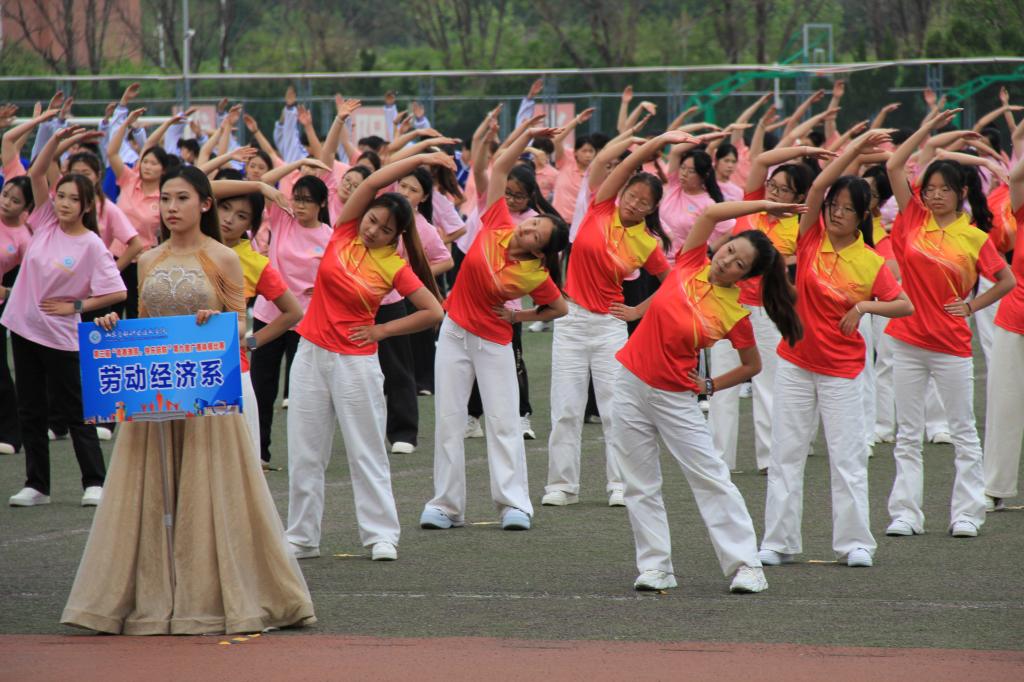 启动仪式后,广播体操比赛正式开始。劳动经济系61名参赛同学着装整齐、精神饱满、动作整齐、舒展有力,以饱满的热情完成体操展示,尽显团结协作的青春风采。